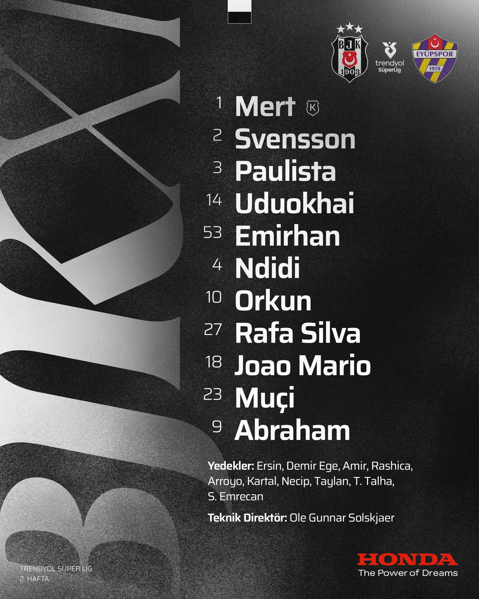Beşiktaş Forum|2. Hafta Beşiktaş 2-1 Eyüpspor Tarih : 17.08.2025 Saat : 21:30 Stadyum : Beşiktaş Park Hakemler : Halil Umut Meler - Murat Ergin Gözütok - Murat Altan - Turgut Doman VAR :