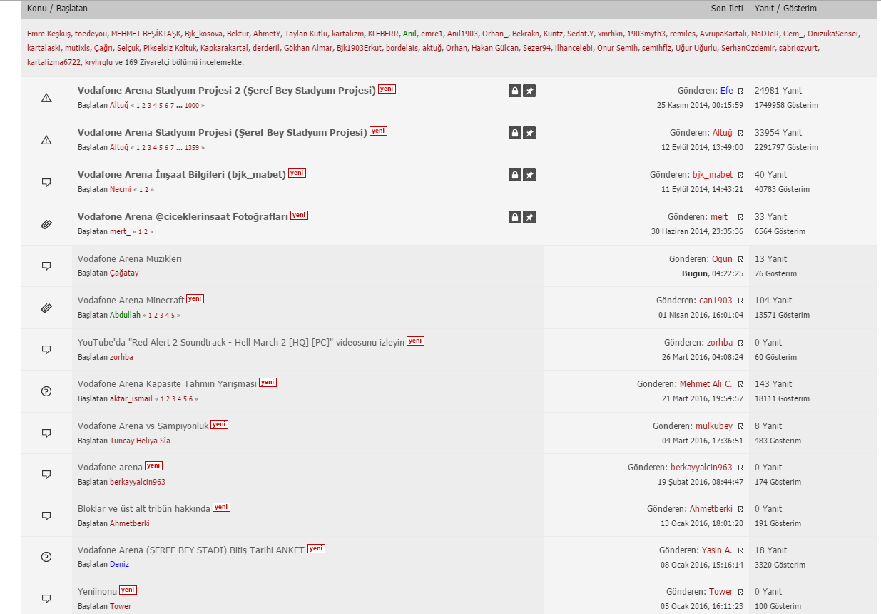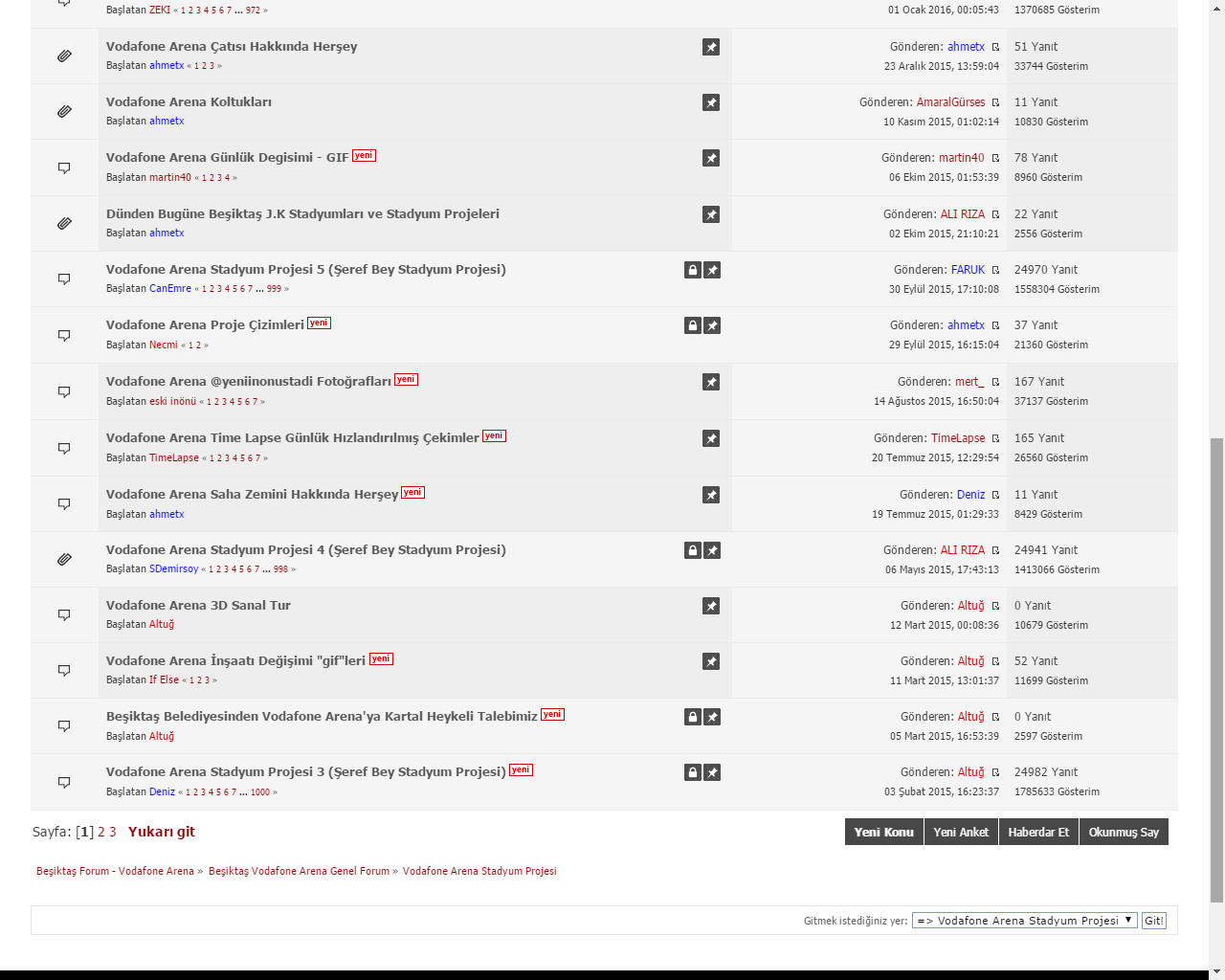 Vodafone Arena Stadyum Projesi forumunda 1.sayfa, sabit tutulan konulardan oluştuğundan forum başlığına girince yeni açılan konuları göremiyoruz çünkü yeni açılan konular 2.sayfada kalıyor. Sabit tutulan eski konuları forum arşivine taşınması gerek böylece foruma ilk giren kişi direk stad konusuna bakmak yerine konu dışı başlıkları da görme fırsatı bulacaktır. (örnek: stat müzikleri vs.) Öneriyi dikkate alacağınzdan eminim, teşekkürler. @Necmi @Altuğ @Yunus @ALI RIZA